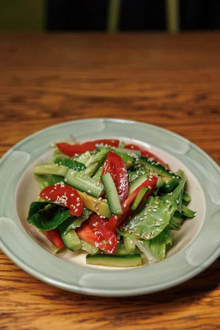 помидоры, огурцы, авокадо, романо, айсберг, кунжутное масло, кунжут